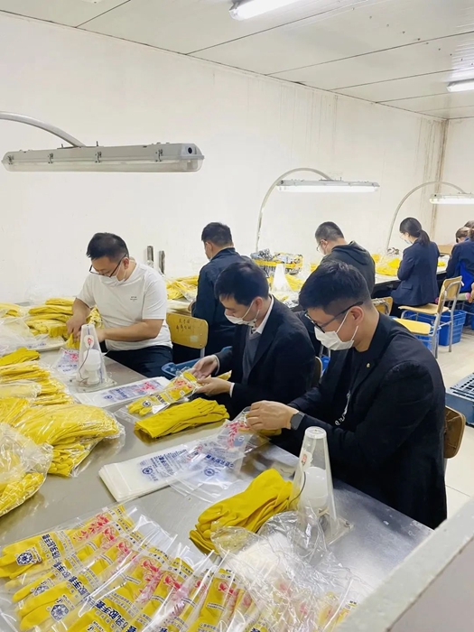 團員青年們在實驗生產(chǎn)線職工師傅的指導下,全身心投入到手套包裝工作中,大家一干就是將近兩個小時, 包裝完成了2000余副手套。