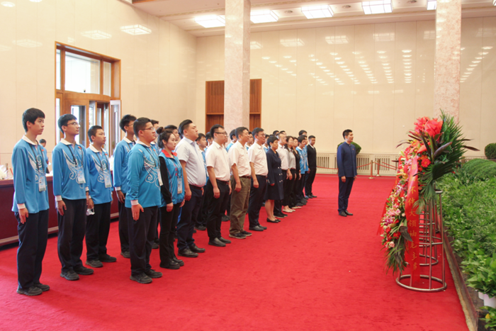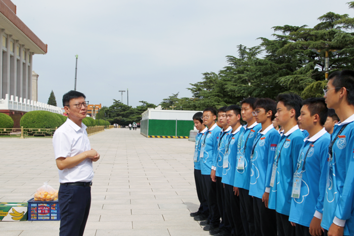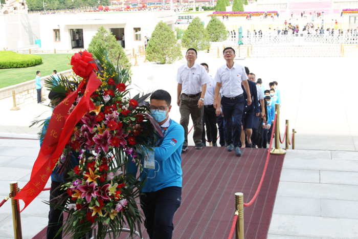 9月27日,北京化工集團副總經理李效軍,黨委常委、組織部部長劉士義;技師學院黨委書記包英華一行專程來到毛主席紀念堂,看望慰問參加志愿服務的團員青年。