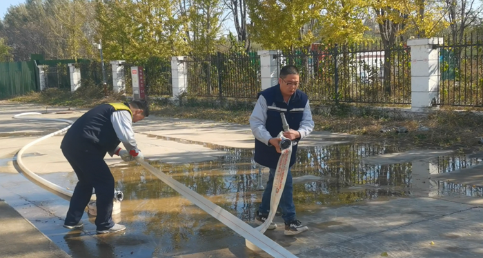 同時,華騰化工還專門組織了消火栓實操。“先接水帶、再開閥門、最后對準目標出水!”在安全員的指導下,員工兩人一組協(xié)作,快速完成水帶連接、水槍連接等步驟,水柱精準噴射至指定區(qū)域,整個過程有條不紊。