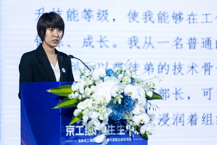 隨后,老前輩代表、全國勞模羅益鋒,中堅代表孟憲冬,青年代表趙小清分別走上前臺,深情講述老中青三代北化人在集團培養下的成長故事。他們扎根于北京化工沃土,直面挑戰、破除困難,與企業共同成長的經歷感動著在場每一個人。