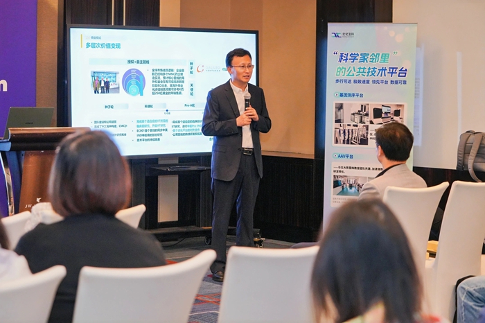 論壇中,北化生科黨總支書記、總經(jīng)理申海成從專業(yè)運(yùn)營空間、專業(yè)運(yùn)營團(tuán)隊(duì)和專項(xiàng)產(chǎn)業(yè)基金等多個(gè)方面,深度聚焦以核酸藥物為代表的五大細(xì)分賽道,向與會(huì)者詮釋“國際生物島”獨(dú)有的“1公里科學(xué)家鄰里”生態(tài),并通過高標(biāo)準(zhǔn)技術(shù)平臺(tái)、專項(xiàng)基金、技術(shù)審評、專屬空間、高科技人才和公共服務(wù)六大生態(tài)要素協(xié)同,系統(tǒng)闡釋從“0-1-N”的產(chǎn)業(yè)化路徑。